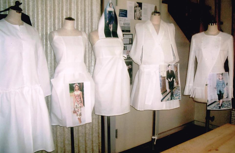 原型、パターンメーキング、縫製、ドレーピング(立体裁断)、ファッションデザイン画の専門知識と技術を習得します。1年目-基礎、2年目-応用、3年目-プロにレベルアップ